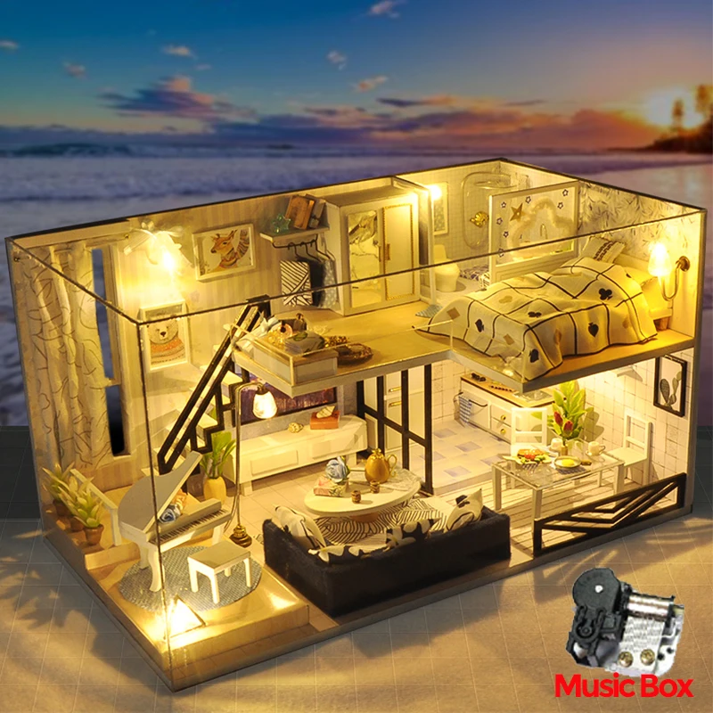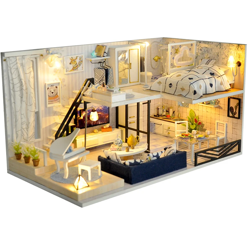 Doll House Furniture DIY Miniature Model Dust Cover 3D Wooden Dollhouse Christmas Gifts Toys For Children Kitten Diary H013 #E :Click Here