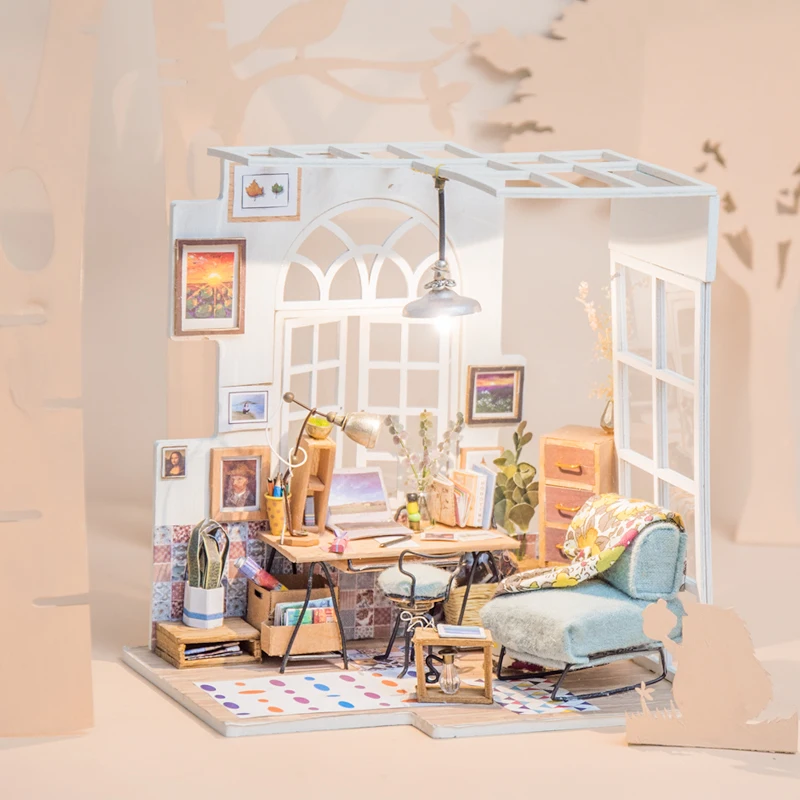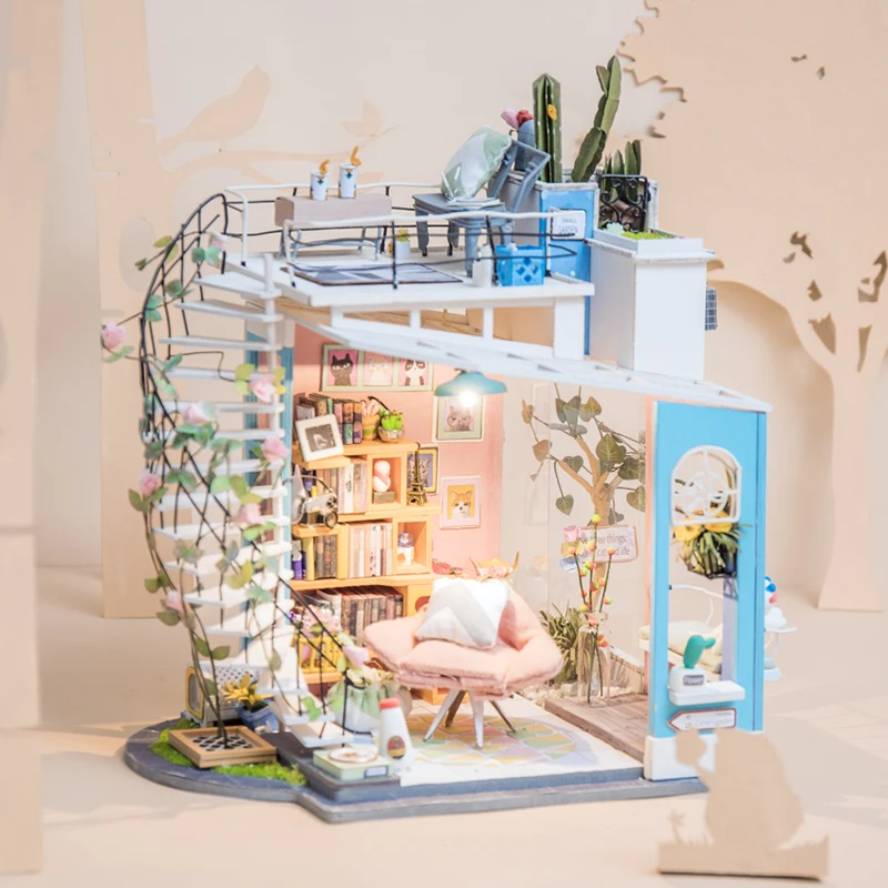 Robotime DIY Wooden Dollhouse Miniature Dollhouse with Furniture Locus's Sitting Room Gift Toys for Children DG106 :Click Here