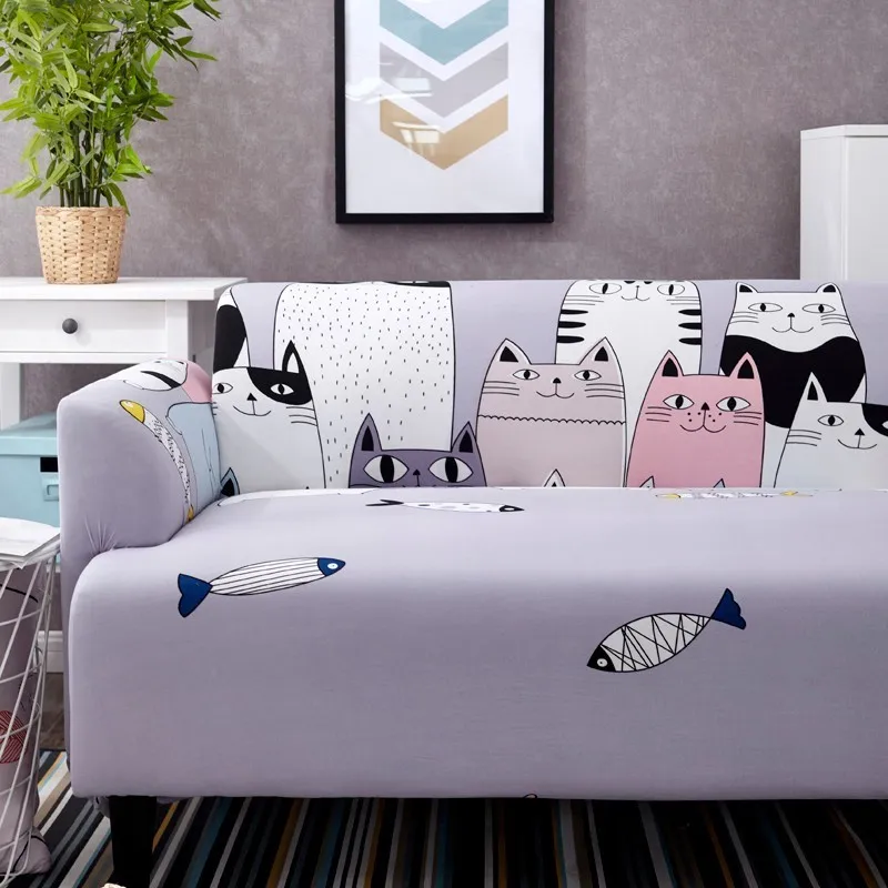 Popular Lovely Cats Spandex Sofa Cover Cute Cats Pattern Sectional Couch Cover All-inclusive Couch Cover Fu