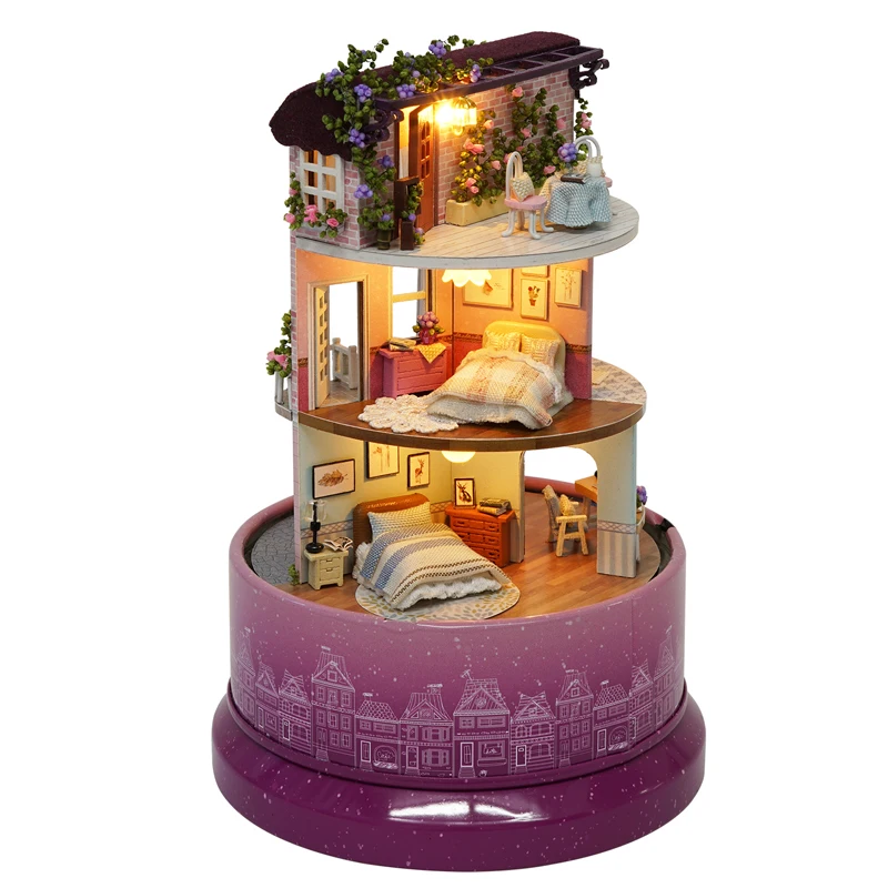 Popular Product Cute Room DIY Dollhouse Miniature Model Doll House With Furnitures Rotate Music Box With Dust Cover
