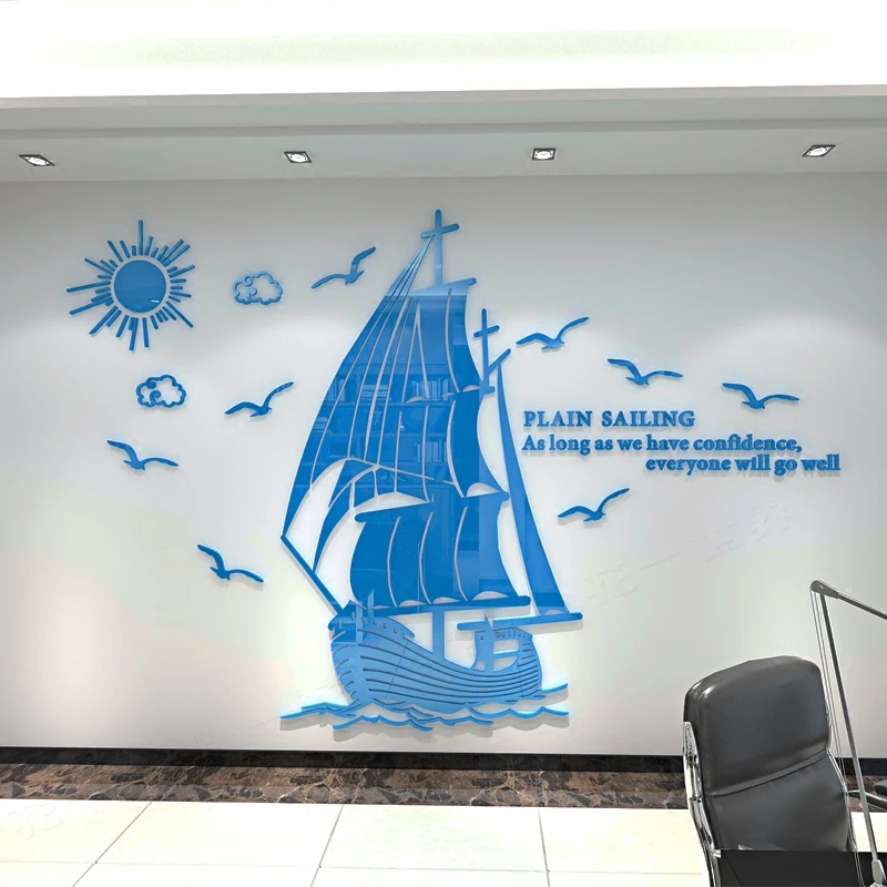 Trend 2018 new Smooth sailing acrylic painting 3D stereoscopic wall sticker company culture inspirational