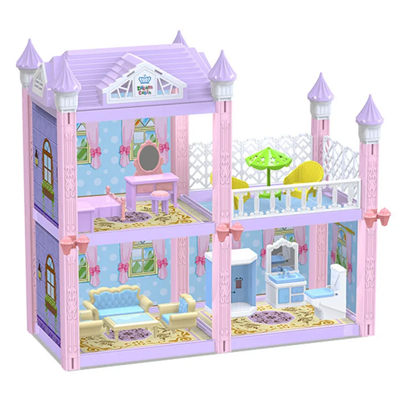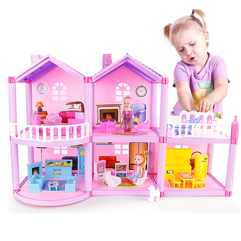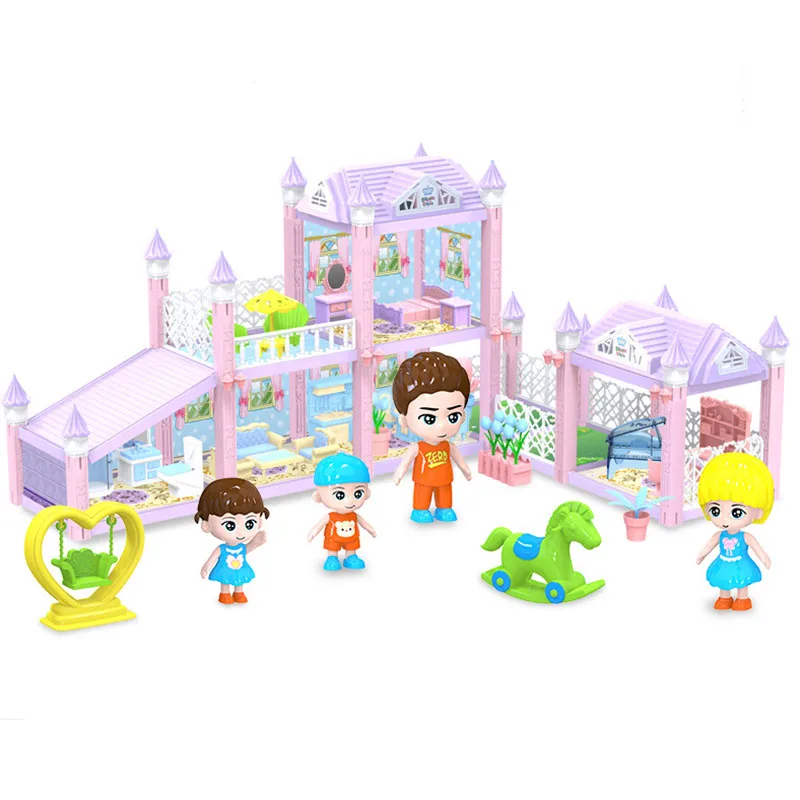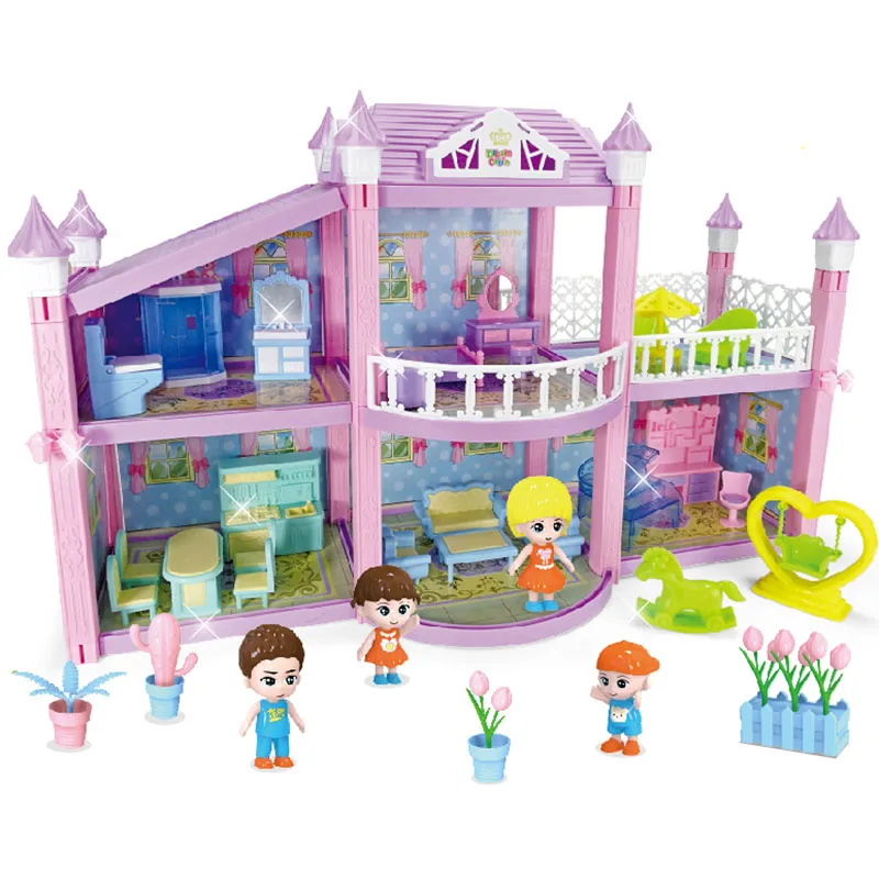 Best New DIY Family Doll House Accessories Toy With Miniature Furniture Garage Assemble Villa Doll House